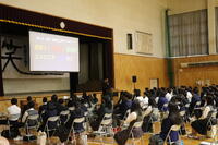 9月25日(木)第1・3学年生徒が総合的な探究の時間において標記発表会を行いました。1年生は9月9日(火)に行った「しごとびとキャリア座談会」において、しごとびとの皆さんから学んだことを3分でシェア、3年生は興味関心のある課題について5分で発表しました。その生徒もスライドを作成し、わかりやすく伝える工夫がされていました。