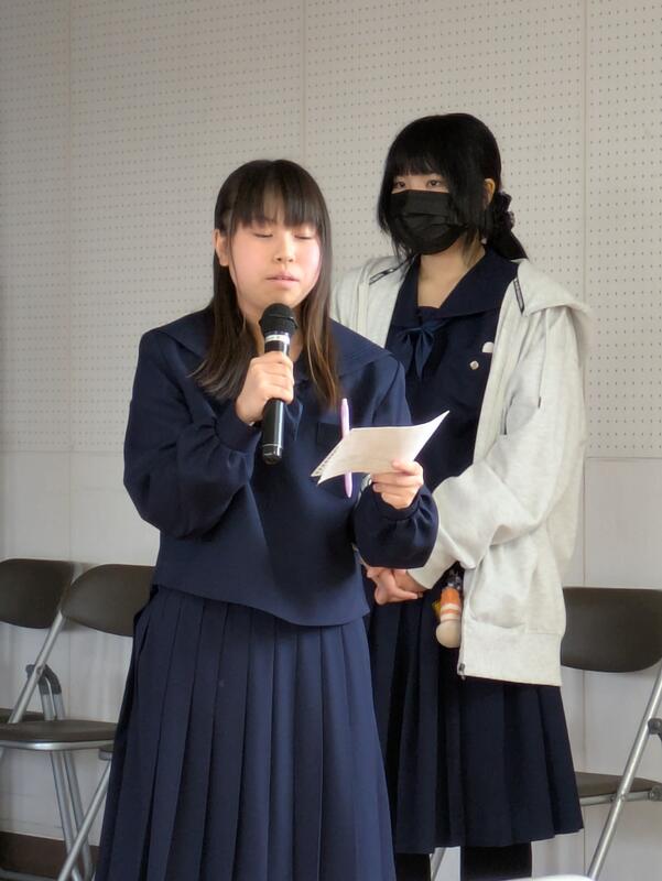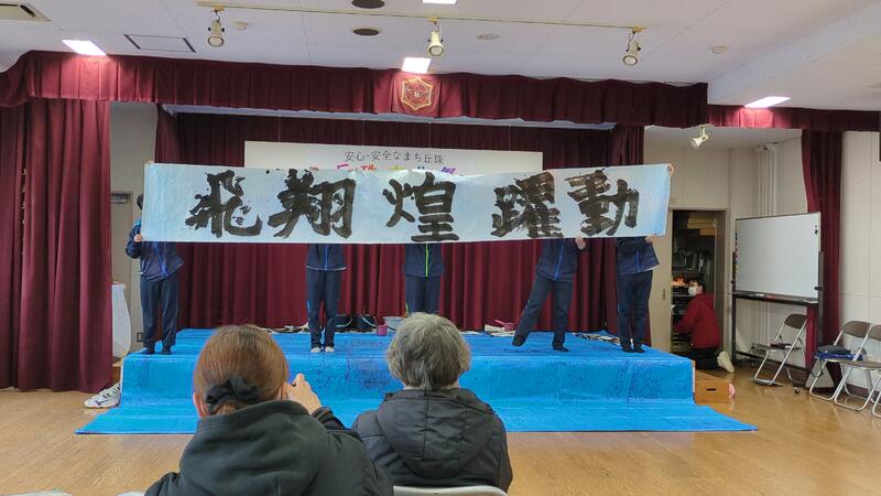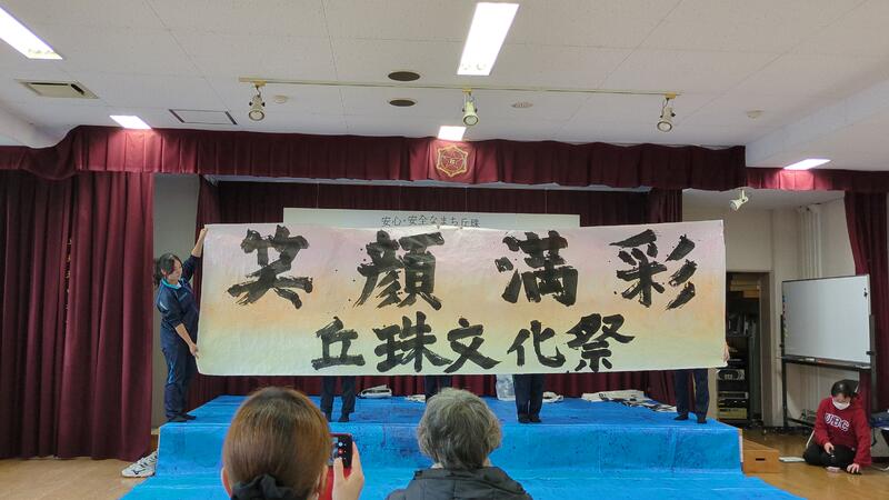 1日目は放送局の生徒たちが司会を務め、制作した作品を(ラジオドキュメント、テレビドキュメント)を披露しました。また、吹奏楽部は14名で、5曲を披露しました。書道部は丘珠文化祭にちなんだ作品をその場で完成させ、大きな拍手を戴きました。