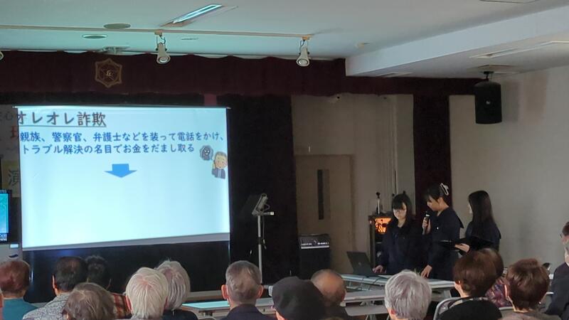 2日目は家庭クラブの発表で、詐欺被害に遭わないために、最近の手口等を紹介し、参加していた高齢者の方々へ、気をつけるきっかけとなりました。