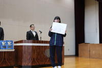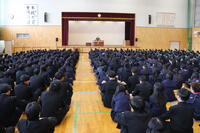 12月23日(火)標記集会を行いました。書道部・書道選択生徒・放送局の表彰の後、校長先生と生徒指導部長からここまでの学校生活に関する評価と反省についてお話がありました。明日から23日間の冬休みに入ります。心身をリフレッシュし、新年1月16日(金)元気に登校してください。良いお年を!